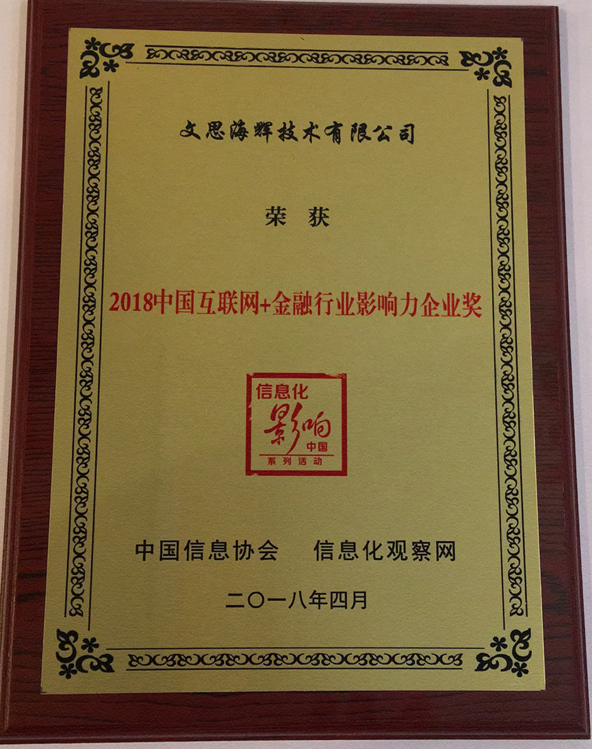 本次论坛同时还评选出2018互联网+产业创新发展行业五大类奖项,文思海辉荣获“2018中国互联网+金融行业影响力企业奖”,再次彰显了文思海辉在金融数字化服务行业内的领先地位。