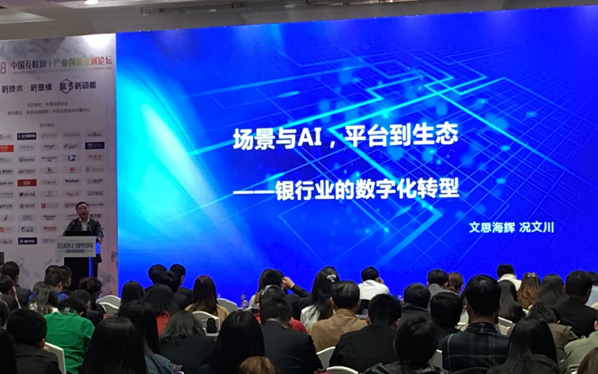 同时,文思海辉高级副总裁况文川在论坛上发表主题为“场景+AI,平台与生态——银行业的数字化转型”的演讲,为大家分享互联网+金融的升级之道。