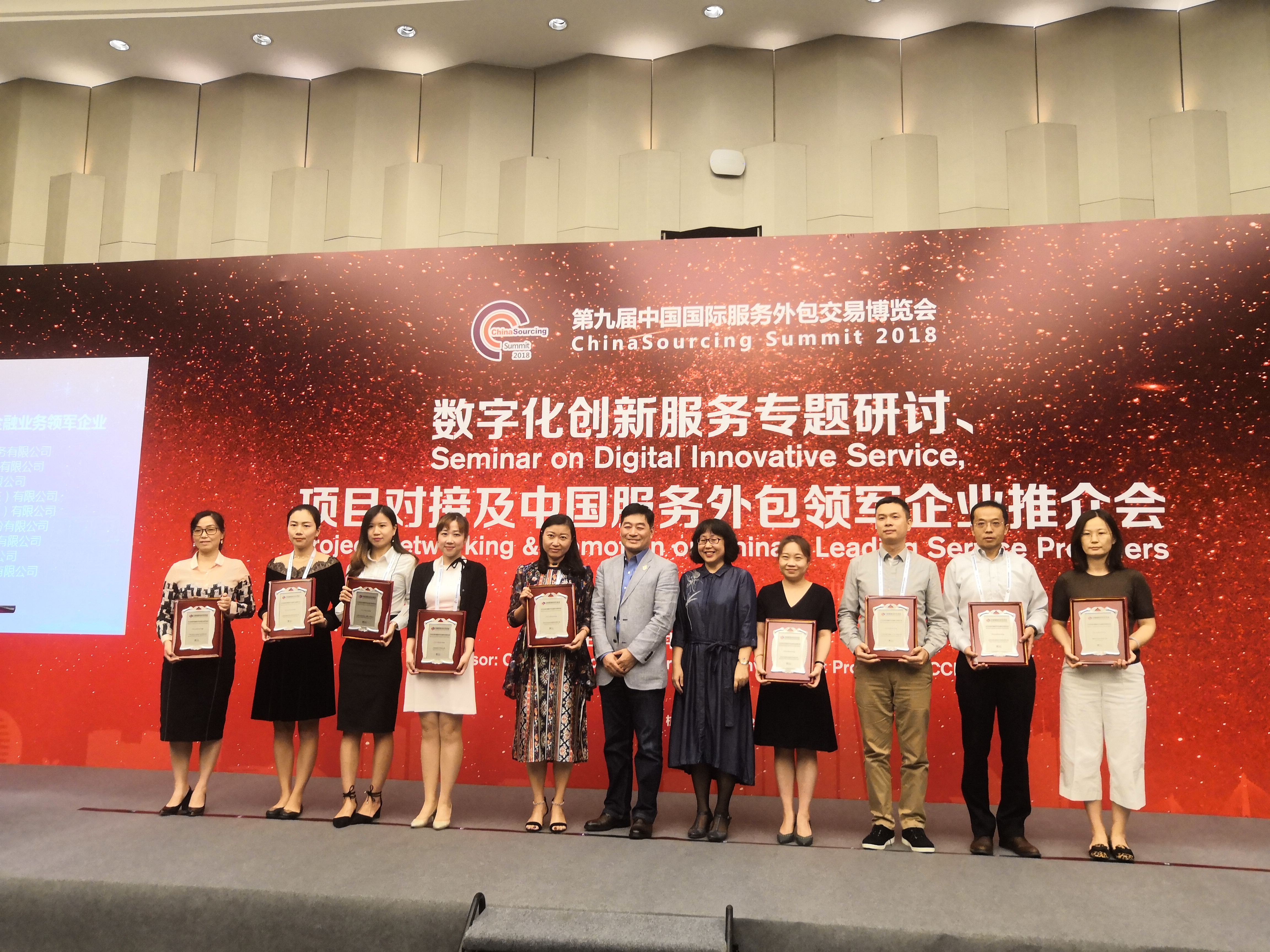 2018年9月26日,由“中国国际投资促进会”主办的数字化创新服务专题研讨、项目对接及中国服务外包领军企业推介会在杭州洲际酒店成功落下帷幕。文思海辉荣膺“2018年度中国服务外包领军及百强企业”、“2018年度中国服务外包十大领军企业”、“2018年度中国服务外包金融行业领军企业”三项大奖,企业实力得到行业认可。
