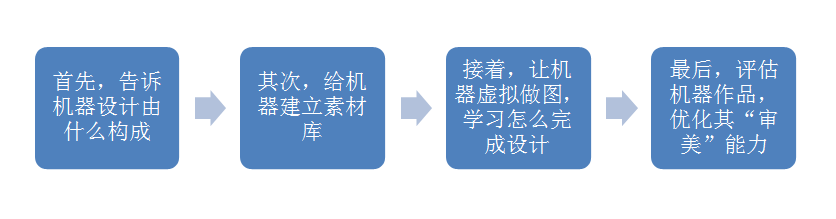 另外,让机器虚拟做图。这个原理有点像下围棋:在设计框架上构建起虚拟画布,类似棋盘,让机器把素材库中的素材往棋盘放,再通过不断尝试和反馈,让机器“学习”怎么完成设计。