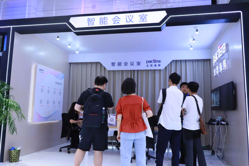 在文思海辉展台现场设置的沉浸式体验区,记者就感受到了扑面而来的“智慧风”。智能酒店、智能会议室两大解决方案,让工作和生活变得更加简单、高效。