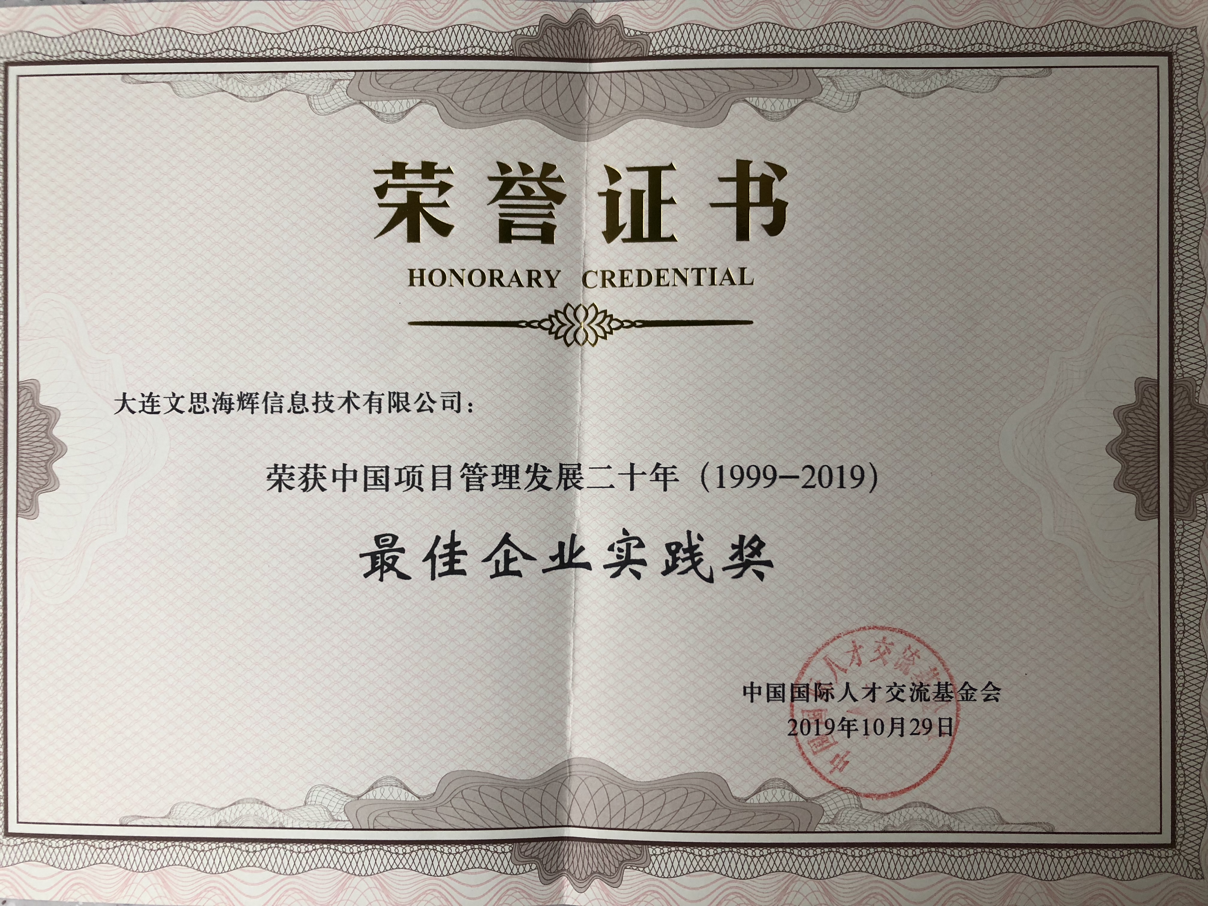 10月29日,由中国国际人才交流基金会主办、项目管理协会(PMI)协办的“中国项目管理发展二十年成果发布暨高峰论坛”在北京举行。2019年恰逢项目管理知识体系及其专业认证引入中国大陆地区二十周年,为全面展现项目管理知识体系在中国的发展历程,推动未来分行业分领域项目管理体系建设,大会主办方策划了中国项目管理发展二十年成果总结,经层层评审,授予包括文思海辉、阿里巴巴、华为、中兴通讯等在内的20家企业“项目管理最佳企业实践奖”,对获奖企业项目管理成果予以了肯定,并支持、鼓励企业对中国项目管理发展所作贡献。