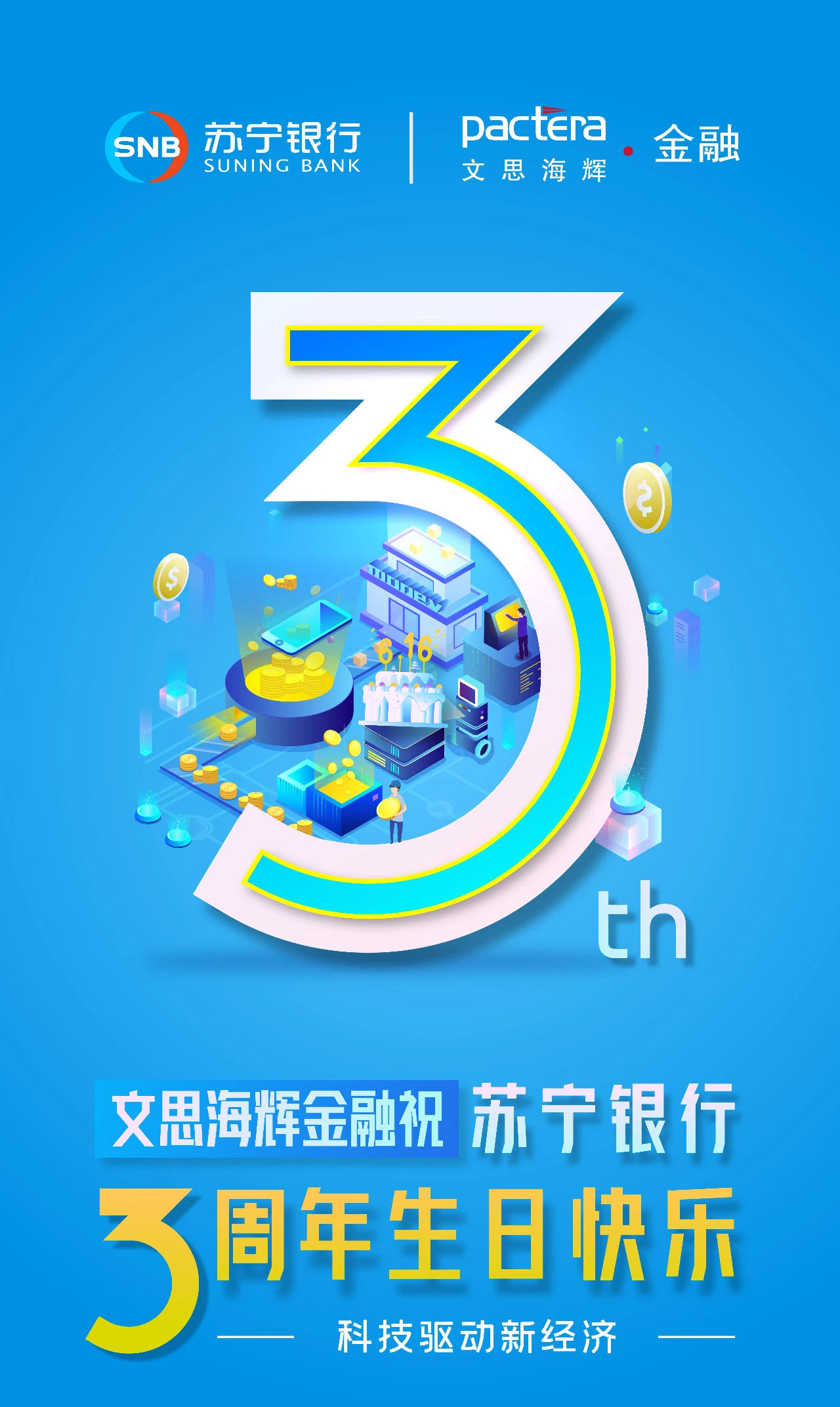 6月骄阳似火,江苏苏宁银行股份有限公司(简称:苏宁银行)迎来成立三周年庆典。作为苏宁银行最早的战略合作伙伴,文思海辉金融为此表示热烈的祝贺。早在2017年苏宁银行成立之初,双方就已结成良好的合作关系,截至目前,双方已在供应链金融、测试体系建设、呼叫中心、CRM、联合贷款等方面展开密切合作。随着合作关系的进一步深化,双方有望迎来更全面、深入的合作,文思海辉金融将利用自身强大的技术优势,助力苏宁银行构建以场景为核心的金融生态圈,牢牢修筑数字化能力壁垒,打造“科技驱动的O2O银行”。
